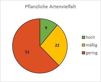 Da die Untersuchung als Citizen-Science-Projekt konzipiert war, konnte keine wissenschaftlich vertiefte Kartierung des Pflanzenbestandes vorgenommen werden. Der Parameter „Pflanzliche Artenvielfalt“ wurde primär über Blühaspekte und das Vorhandensein von Blühpflanzen, Kräutern und Stauden gegenüber Gräsern charakterisiert. Beim Parameter „Überwinterungsstrukturen“ lag der Bewertungsschwerpunkt auf dem Angebot an Altgrasbeständen und dabei insbesondere auf dem Anteil an „harten“, krautartigen Strukturen im Winterhalbjahr.